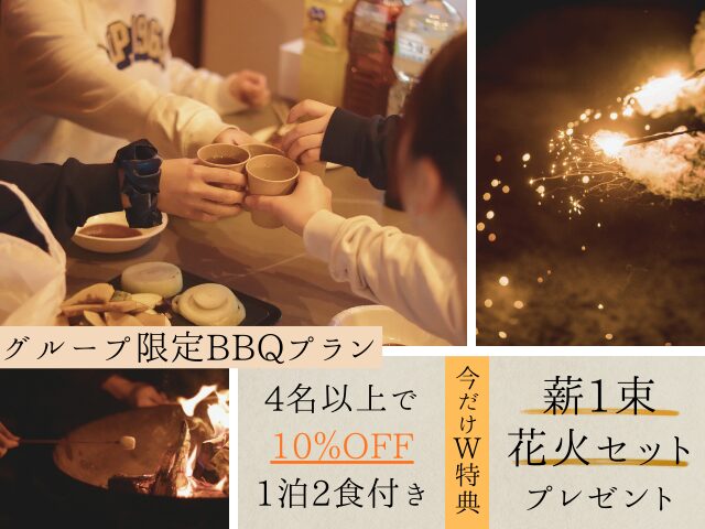 期間限定!4人以上でお得に泊まれる「グループBBQプラン」登場☆