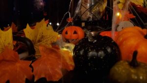 管理棟ではカボチャやロウソクが怪しく揺れて、夜の雰囲気もバッチリ!